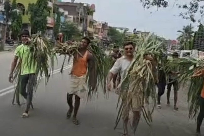 गरुडाका मेयरलाई बाँदरले क्षति गरेको उखु उपहार
