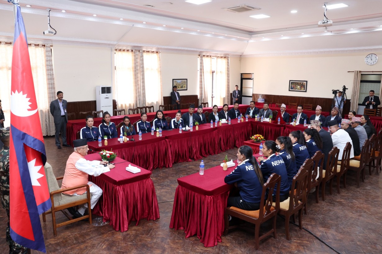 प्रधानमन्त्री ओलीले दुुई साता अघि सम्पन्न ‘काभा वुमन्स नेसन्स भलिबल प्रतियोगिता’ हेर्न आफूले चाहे पनि मन्त्रिपरिषद्को आकस्मिक बैठकका कारण जान नसकेको अवगत गराउँदै खेलाडीका प्रगति, चाहना र मागबारे आफूू जानकार रहेको सुुनाएका थिए । प्रधानमन्त्री ओलीले प्रतियोगिताका उपविजेता खेलाडीलाई नेपाल सरकारले जनही तीन लाख रुपैयाँ दिने निर्णय गरेको जानकारी गराएका थिए भने खेलाडीले त्यसका लागि आभार व्यक्त गरेका थिए ।