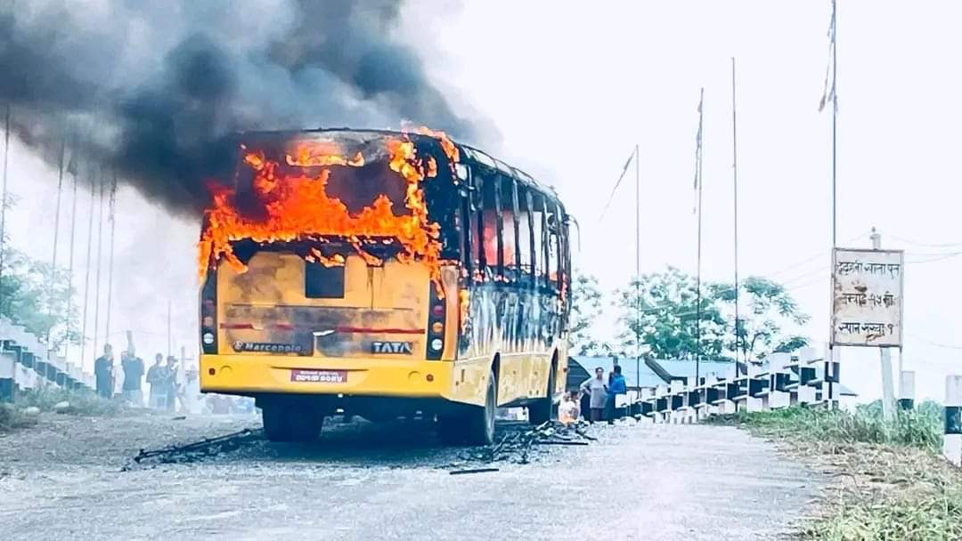 आगलागीबाट बस पूर्ण रुपमा जलेको छ । तीनवटा मोटरसाइकलमा आएका ६ जनाको समूहले बसमा पेट्रोल छर्किएर आगो लगाएको प्रत्यक्षदर्शीले जनाएका छन् ।
