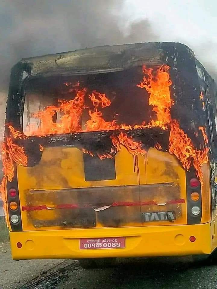 विद्यार्थी लिन गएको बागमती प्रदेश ०६ ००१ क ००४५ नम्बरको बसमा ६ जनाको समूहले आगजनी गरेर भागेको विद्यालयले जानकारी दिएको हो ।