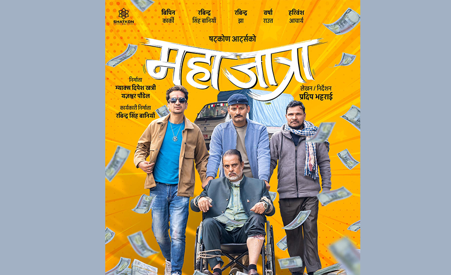 काठमाडौं : षट्कोण आर्ट्सले आगामी फिल्म ‘महाजात्रा’को आधिकारिक पोस्टर सार्वजनिक गरेको छ । पोस्टरमा फिल्मका प्रमुख तीन कलाकार रविन्द्रसिंह बानियाँ, विपिन कार्की र रविन्द्र झासहित हरिवंश आचार्यलाई पनि चित्रण गरिएको छ ।