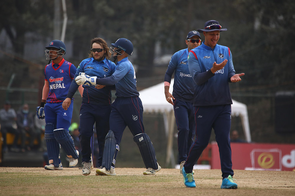 नेपालका लागि आसिफ सेखले सर्बाधिक ५८ रन बनाएका थिए । त्यस्तै कुशल मल्लले ३६, भिम सार्कीले २६ तथा कुशल भुर्तेलले १८ रन बनाएर आउट भएका थिए । त्यस्तै कप्तान रोहित पौडेल, अनिल शाह र देव खनाल शुन्यमा आउट भए भने दिपेन्द्र सिंह ऐरीले ६, सोमपाल कामीले ५ र करण केसीले १२ रन बनाए ।