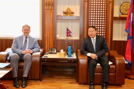काठमाडौं- अमेरिकाले नेपालको शान्ति प्रक्रियाका बाँकी निस्कर्षमा पुर्याउन सहयोग गर्ने प्रतिबद्धता जनाएको छ। नेपालका लागि अमेरिकी राजदूत डिन थम्पसनले नवनियुक्त अर्थमन्त्री वर्षमान पुन अनन्तलाई आइतबार मन्त्रालयमा शिष्टाचार भेट गरेका थिए।