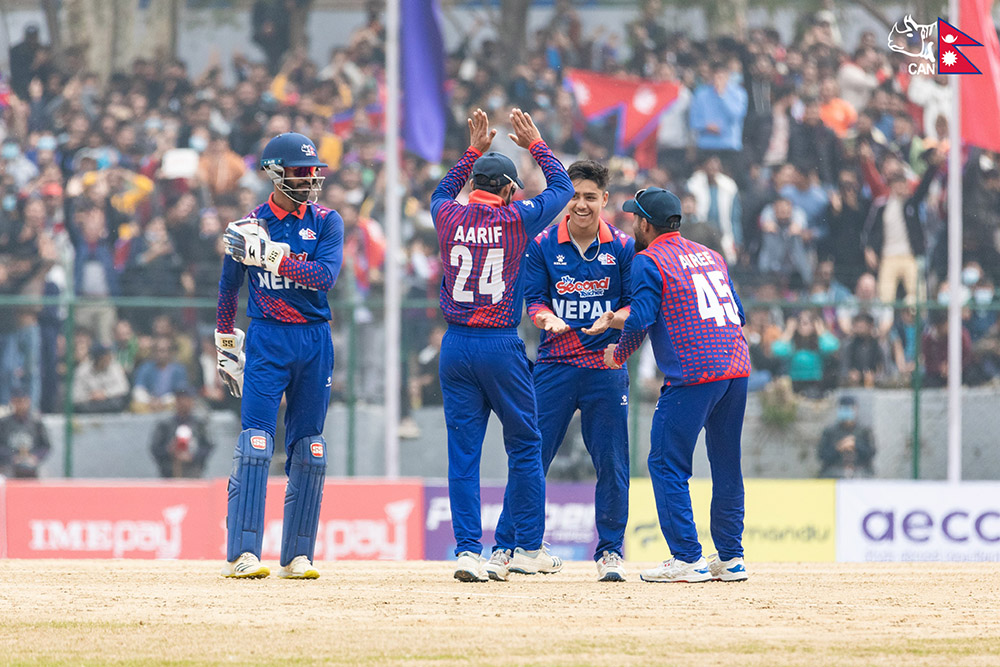 त्यसैगरी नेपाली बलर प्रतिस जिसीले उत्कृष्ट बलिङ गर्दै ३ विकेट लिएका थिए । प्रतिसले ४ ओब्र्मा १३ रन दिएर ३ विकेट लिएका हुन । त्यसैगरी करण केसी र कुशल मल्लले २–२ विकेट लिए भने दिपेन्द्र सिंह ऐरीले एक विकेट लिएका थिए ।