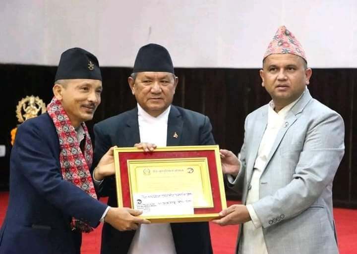 वीरगंज सिटी डटकम र वीरगंजबाट प्रकाशित हुने प्रतीक दैनीकका सम्पादक प्रताप श्रेष्ठलाई हिजो शितल निवासमा आयोजित विशेष समारोहमा सूचना तथा सञ्चारमन्त्री पृथ्वी सुब्बा गुरूङले नगद रु १२ हजार र सम्मान पत्र दिएर सम्मानित गर्नु भएको थियो।