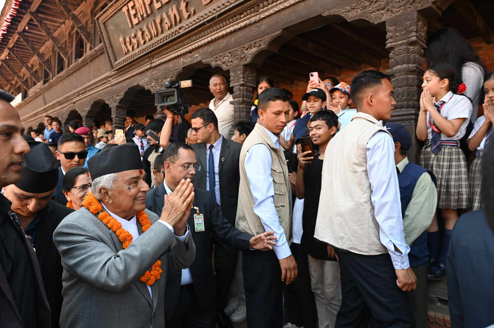 काठमाडौं- राष्ट्रपति रामचन्द्र पौडेल सार्वजनिक स्थलमा पुग्ने ‘सार्वजानिक स्थलमा राष्ट्रपति’ भन्ने कार्यक्रम अन्तर्गत शुक्रवार पहिलो दिन भक्तपुर दरवार स्क्वायरको पुगेका छन् ।